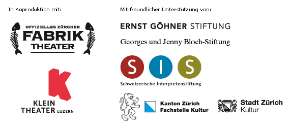 Fabriktheater Zürich, Kleintheater Luzern, Kanton Zürich Fachstelle Kultur, Stadt Zürich Kultur, Ernst Göhner Stiftung, SIS (Schweizerische Interpreten Stiftung), Georges und Jenny Bloch Stiftung